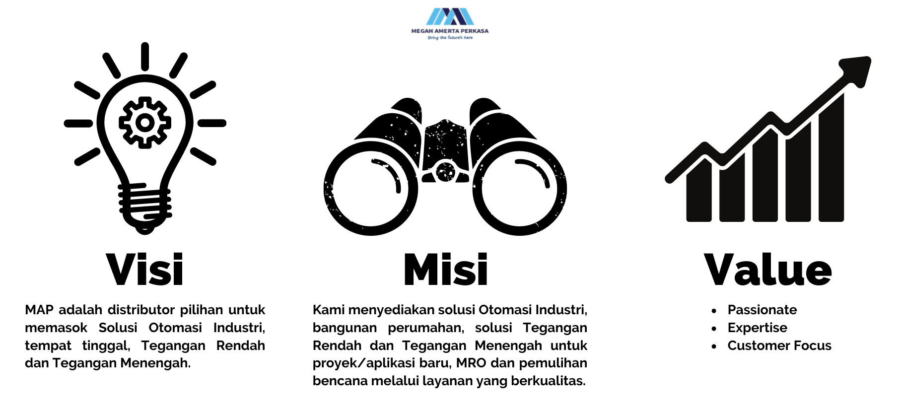 Perusahaan swasta yang bergerak di Kontraktor Mekanikal & Elektrikal dalam pembuatan serta pemasangan berbagai macam panel listrik. Sejak didirikannya, Megah Amerta Perkasa telah mencapai sukses dengan pemasangan dan pembuatan panel dengan mutu dan kualitas yang sangat memuaskan para klien. Karena ditangani langsung dengan tenaga ahli yang profesional dalam bidang pembuatan dan perakitan panel. Panel – panel yang dibuat oleh Megah Amerta Perkasa telah digunakan berbagai macam instansi, baik instansi pemerintah maupun swasta yang tersebar di seluruh wilayah nusantara Indonesia, dengan harga yang kompetitif dan bersaing di seluruh wilayah nusantara Indonesia.